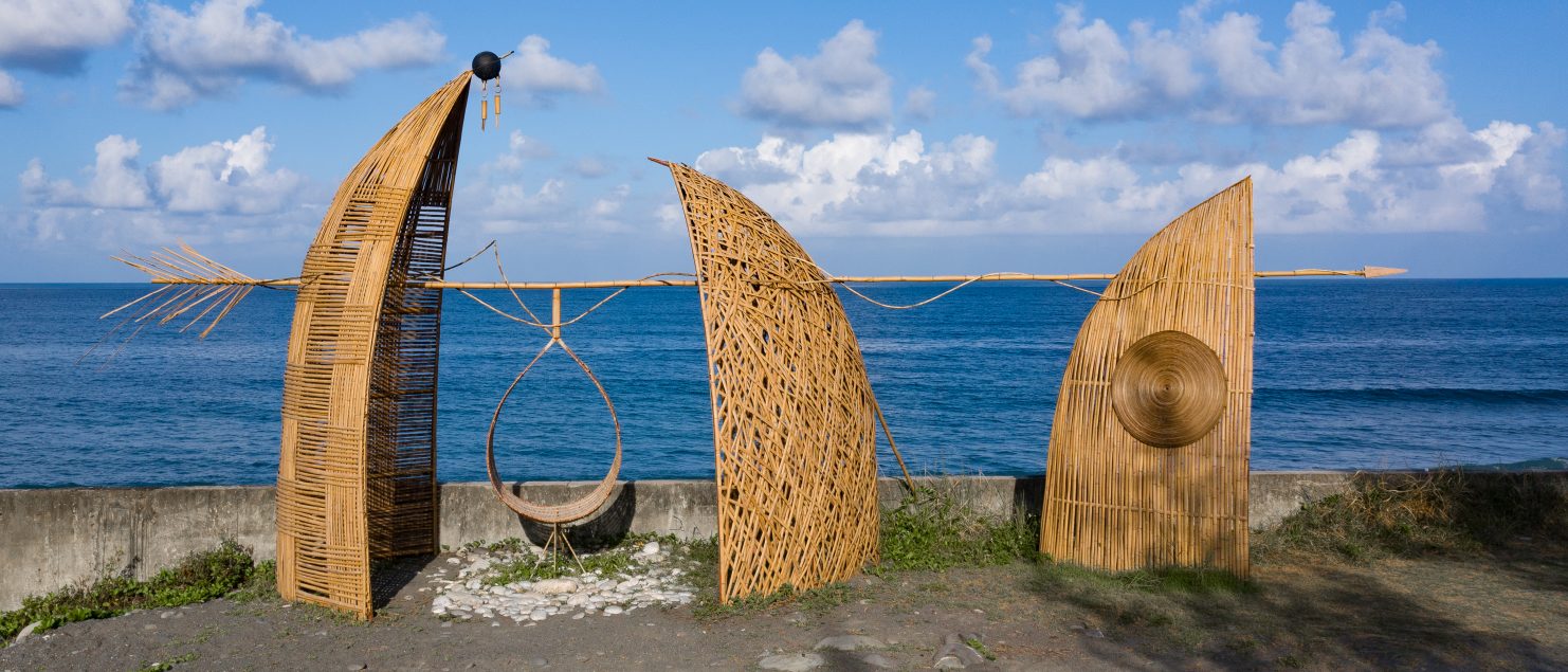 在田區裡擺放一張鋪著象徵飯店的白床單的雙人床佔據「海景第一排」、來自豐濱鄉不同部落,不同年紀的族人,透過投影在傳統屋的竹構牆面上,輪流說著對於「父親」的記憶(變遷的軌跡)、行囊背簍是根離的象徵、生活的日常物件是象徵化的原住民圖騰,「移動中的部落」探討人在移動中,創造現在同時尋覓傳統的交錯軌跡…。今年森川里海濕地藝術季的創作有現代考古與藝術想像的虛實交錯,有資本世代嚮往族群共生家族團結的反思。