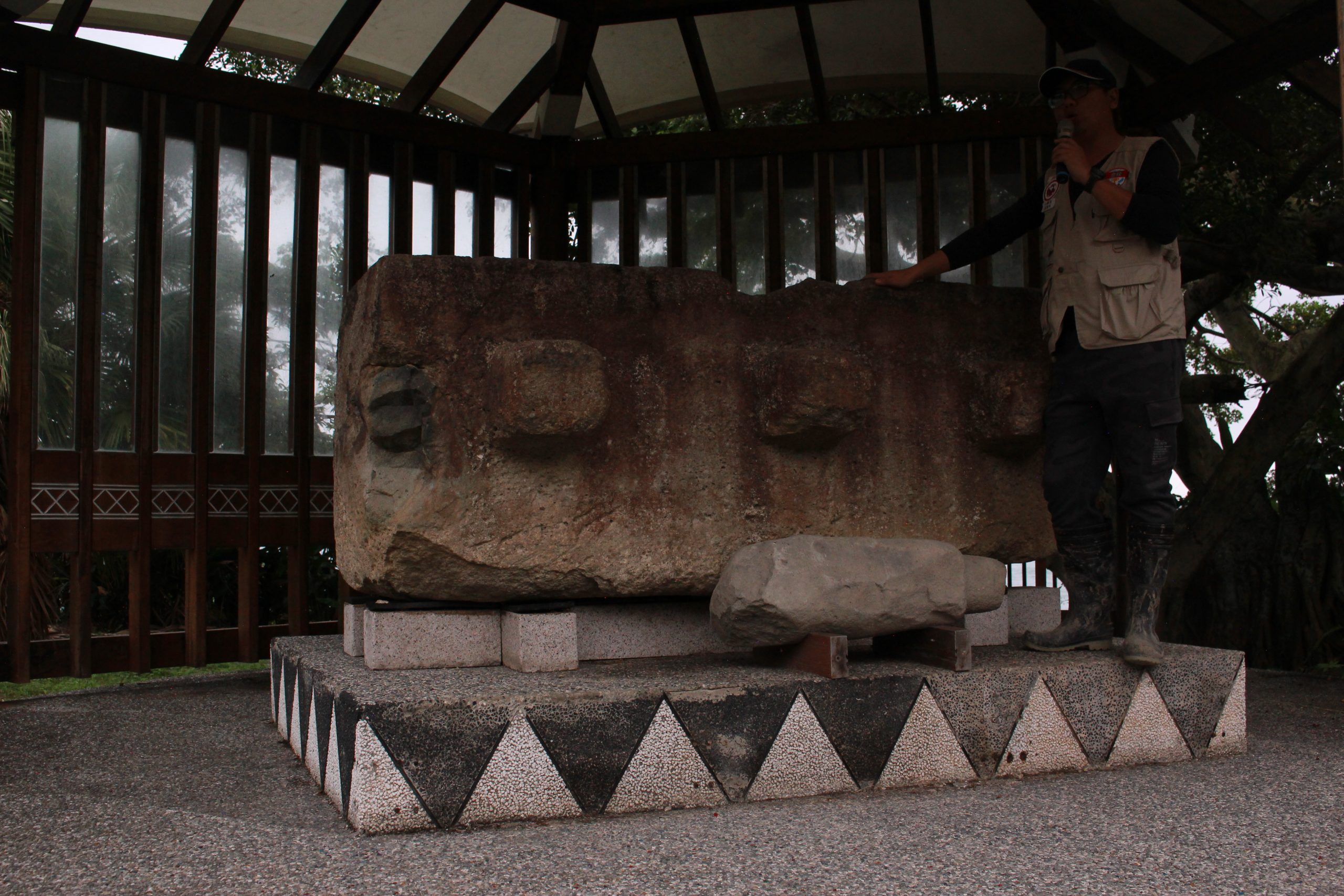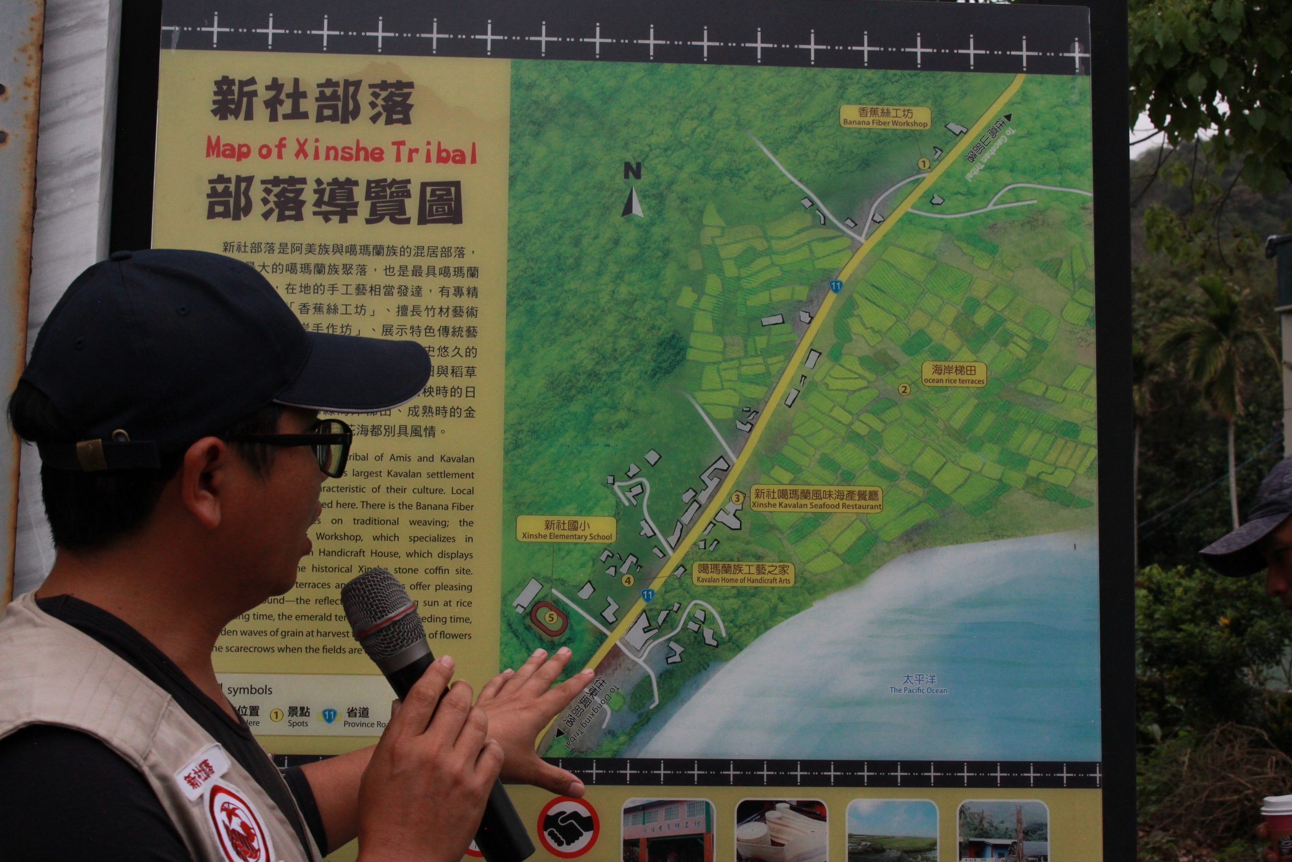 產業發展與⼯作型態之後由導覽員潘國祥帶⼤家解說,在新社部落這個區域的⽔梯⽥仍然保留得很完整,⼀直到今天都還保留著傳統的耕作模式,因此也孕育出了全台灣第⼀個有機的⽔稻專區,也在這個導覽也可以知道⼀個基本在這個地⽅需要知道的耕作模式,如何考量氣候、⿃害等等的問題也因如此這裡的族⼈他們會因為不同的季節可能有時會是農夫有時則會變成漁夫到了冬天甚⾄會進⼭變成獵⼈,也就帶出了原住⺠對待⾃然環境的基本概念,因應著不同的⽉份、季節去變換不同的⾝份。新社岩棺新社岩棺出⼟於花蓮新社⼀件為台灣東部史前⽂化所遺留下的器物,潘國祥導覽員說⽬前這個岩棺是被定義為「岩棺」但仍然存在著許多考究上的爭議,在他的造型上也有⼀種說法是他可能是⼀種盛裝液體的器⽫,可能是⽔缸等等的,潘國祥導覽員分享說,以前噶瑪蘭族的祭司,會使⽤這個岩棺來作為祈雨等的儀式器⽫,會在裡⾯燃燒稻草來祈求降雨,它獨特的造型和交錯著不同⽂明和時間的⽂化、歷史意義,也帶給藝術家們許多在創作上的想像。