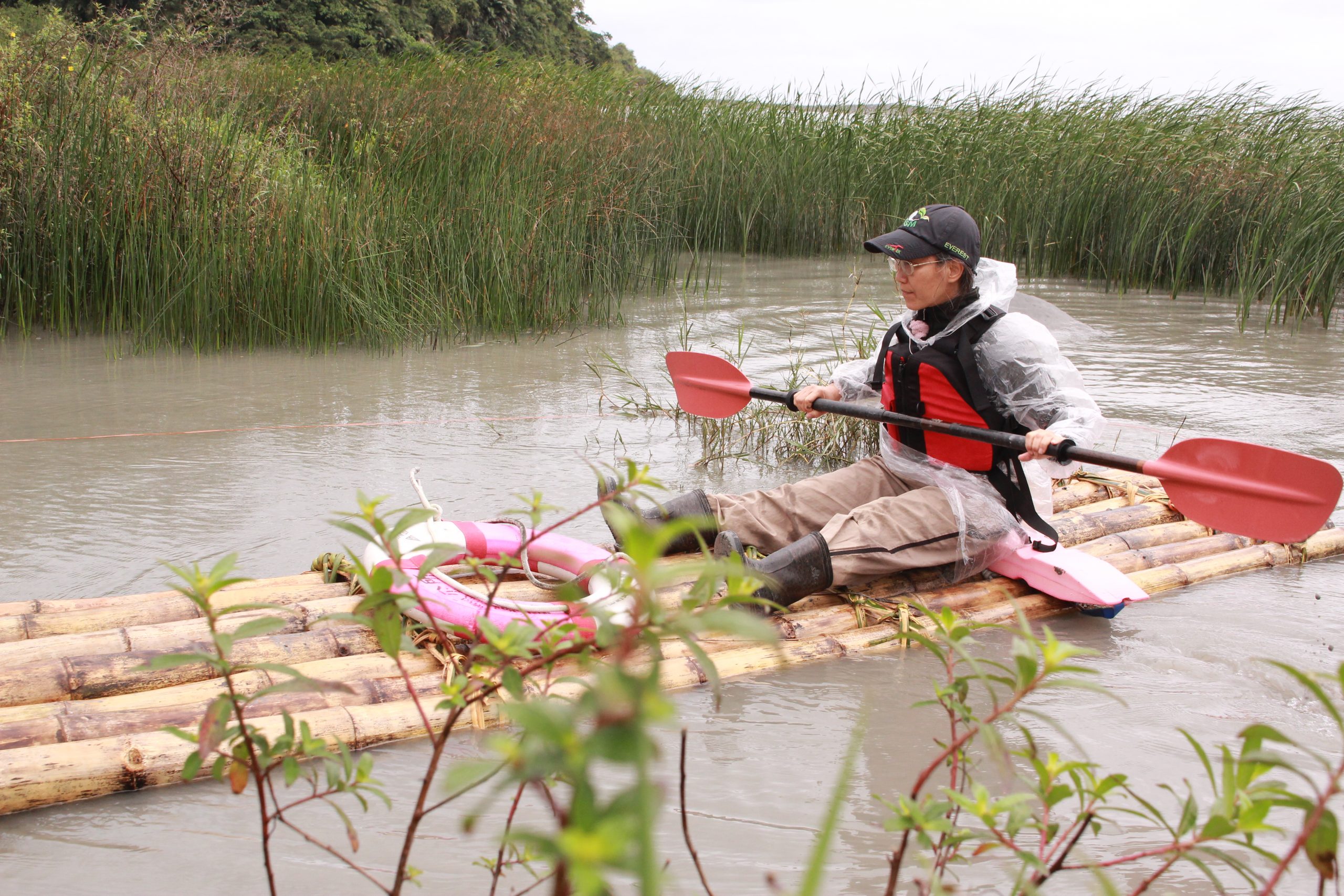 最後,⼤家趁著退潮前,風雨還可接受的情況下,讓⼤家體驗上⽵筏漂流出去的感覺,在經歷過這麼辛苦的採集到製作的過程,在海上漂流的藝術家們,即便⼀開始出去的可能還帶有點擔⼼的⼼情,但每⼀個體驗過的感想都是舒服且奇妙的感受,⽽整個⼯作營也在這裡有個完美的結束。