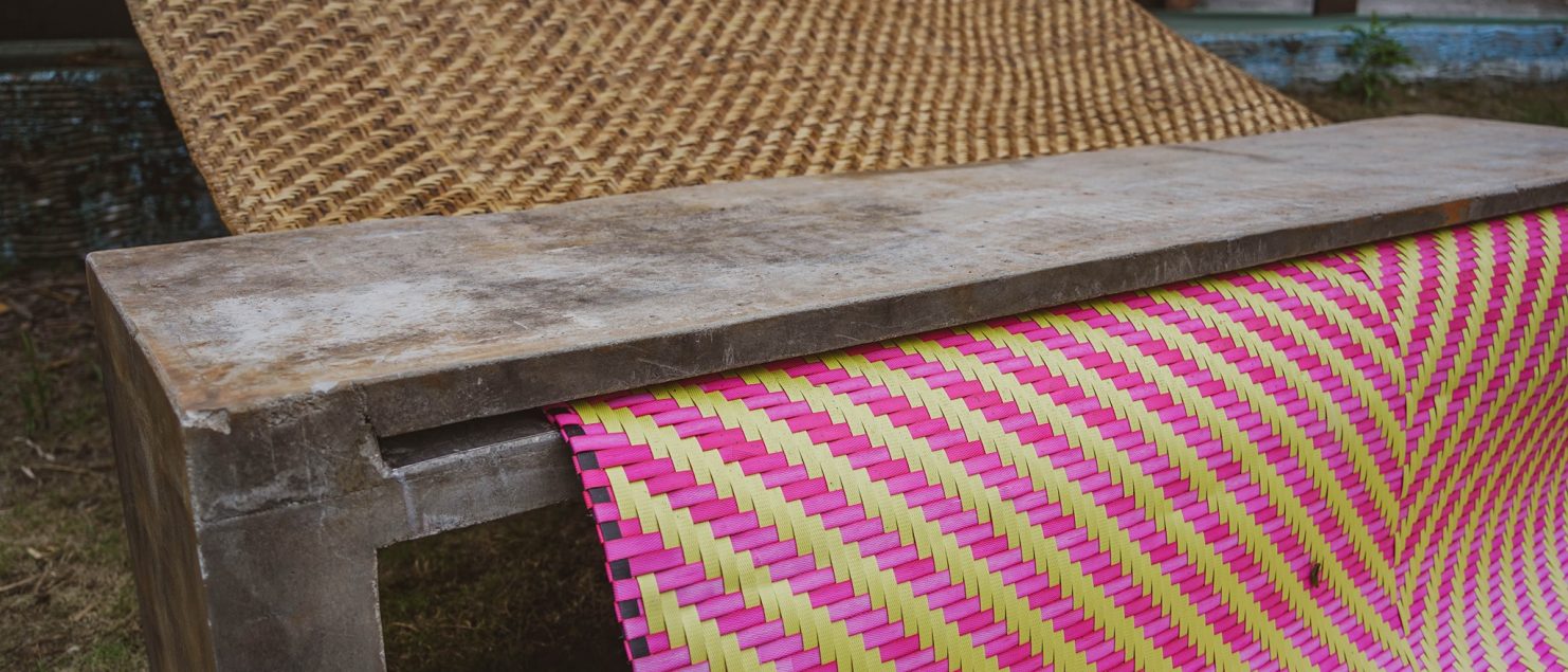 第一次到Akac陳豪毅創作的現場看掛好的藤席時,挺驚喜,作品的延伸幅度彷如復興部落山腰斜坡的地形,懸空的藤編部分恰似回應藤這材料來自山林,垂在地上的塑膠材質(尤其是部落常用的打包帶),則回應人類生活的痕跡。